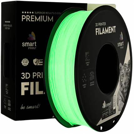 PLA Luminous Smart Print je posebni filament, ki po osvetlitvi sveti v temi zaradi dodatka fosforesc..